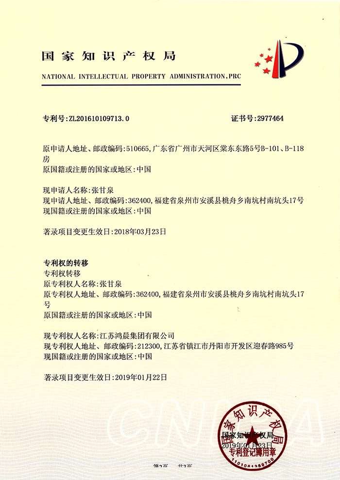鴻晨集團(tuán)先后獲得了"國(guó)家高新企業(yè)""江蘇省質(zhì)量信用產(chǎn)品"、“全國(guó)質(zhì)量信譽(yù)產(chǎn)品"、“國(guó)家檢測(cè)達(dá)標(biāo)產(chǎn)品"等品質(zhì)證書(shū)。
