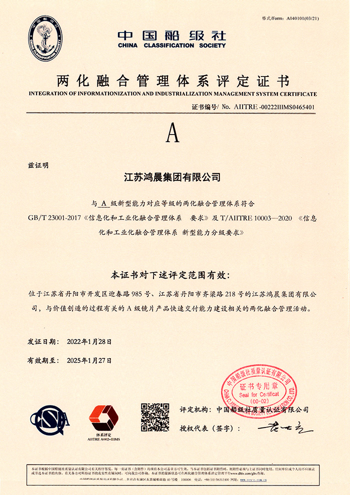 鴻晨光學(xué)全資收購(gòu)CONVEXOPTICS Co., Ltd.公司獲得ISO14000環(huán)境體系認(rèn)證,贏得了歐美客戶的認(rèn)可,并取得江蘇省視光學(xué)產(chǎn)品質(zhì)量信用證書(shū)。